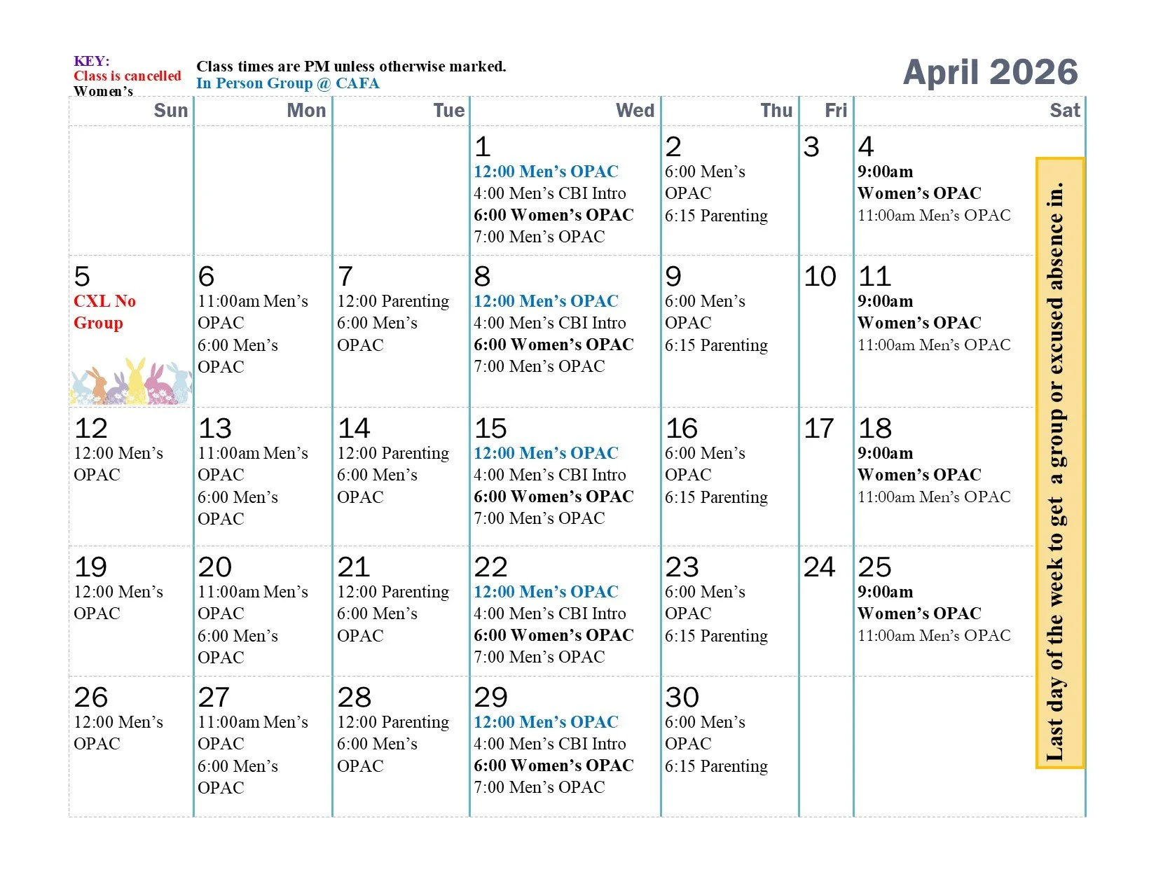 Wednesday Noon Men's OPAC